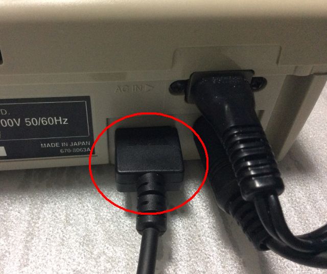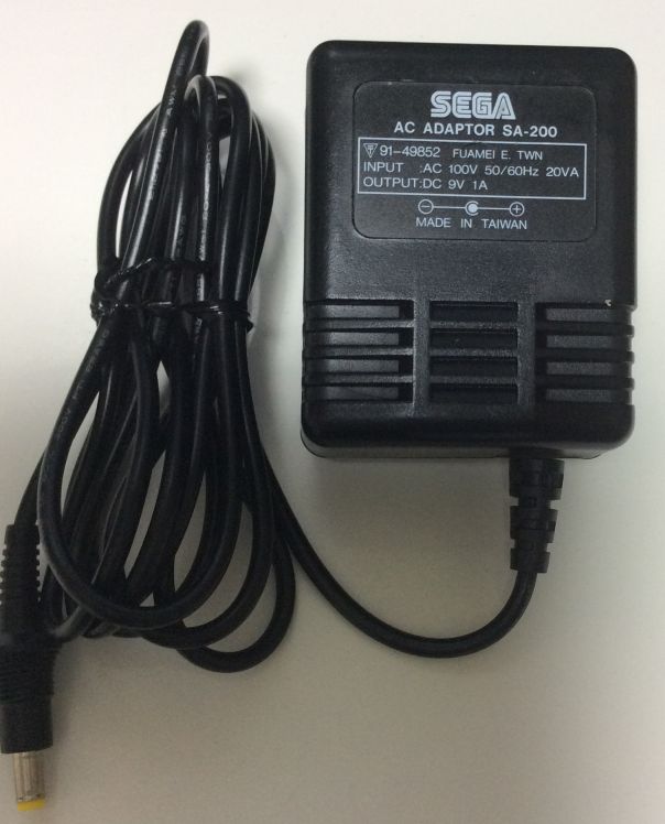 上記していますように、付属のACアダプタが必要です。メガドライブ2やスーパー32X用のACアダプタとほぼ同じサイズですが、当然別物です。詳細は以下の通りです。
