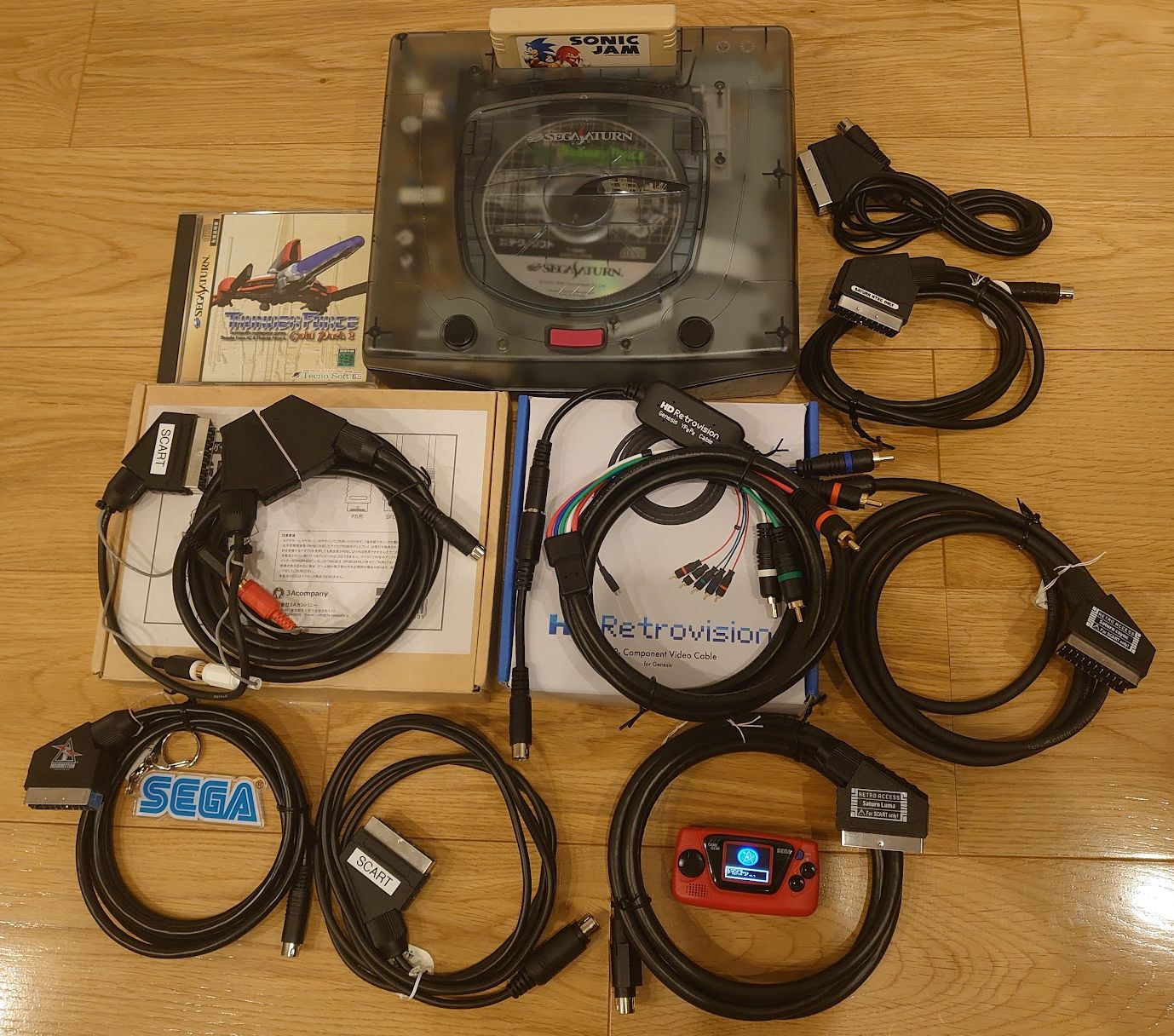 Retro Access : 公式サイトから購入できますが、2022年8月現在受注タイミングが一か月に一度なのがネックです。こちらはSCARTだけでなく、JP21仕様のサターン用RGBケーブルも取り扱っています。同期の種類が選べるのもいいですね。ケーブルはとりまわしのしやすいFortraflexが気に入ってます。 Sega Saturn。
