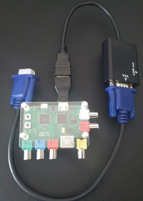 オプションのHDMI→VGAアダプタを使うことで、OSSCに接続することができる。これにより480pから解像度を上げることができる
